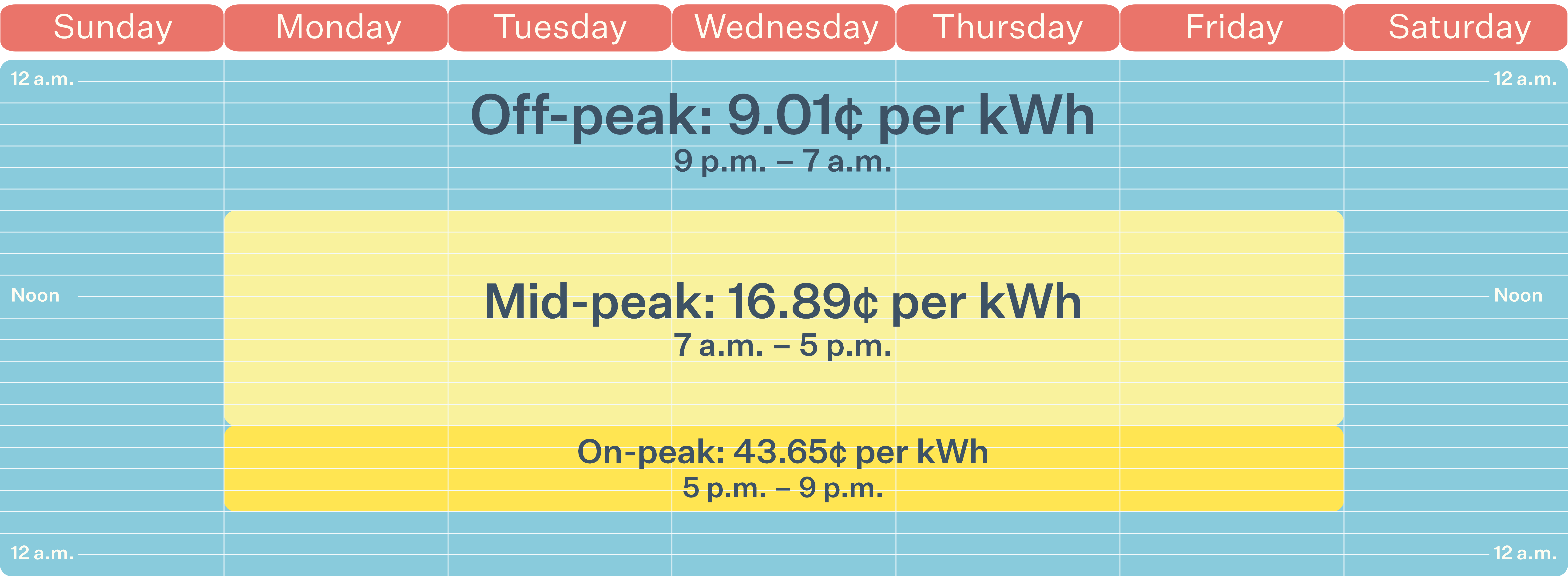 On-Peak: 5-9 p.m. Monday-Friday – 43.65¢ per kWh