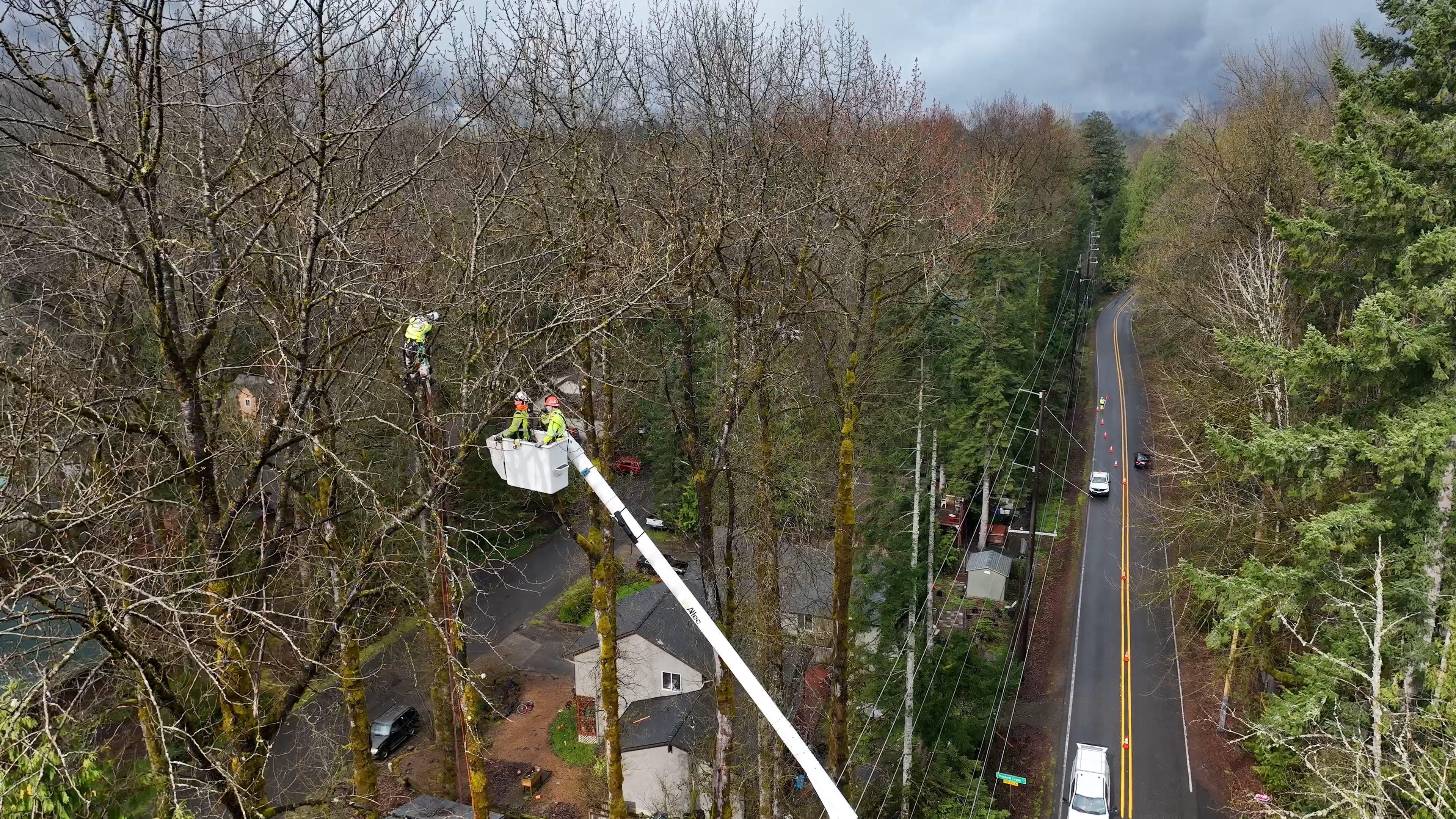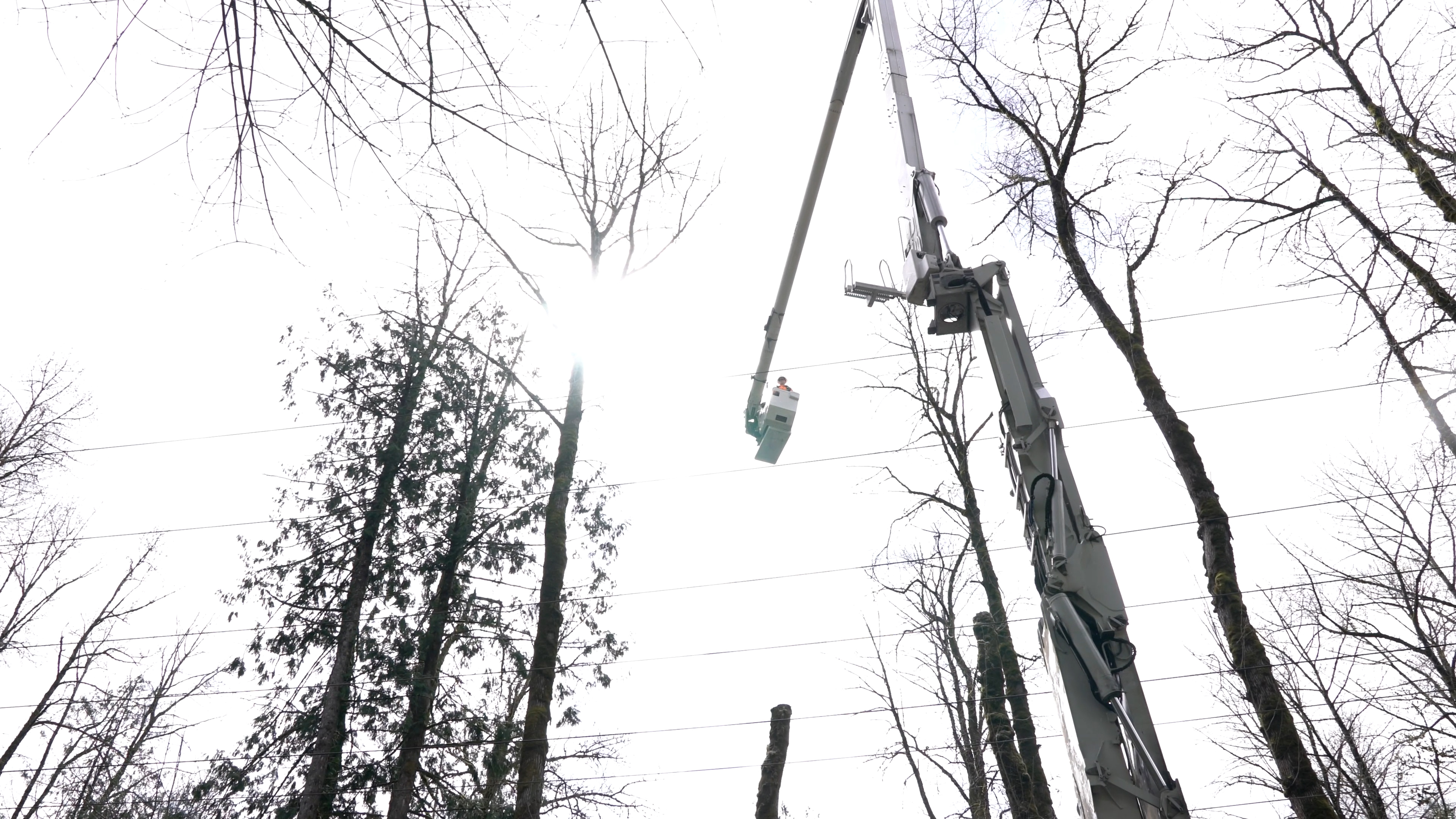 As part of our wildfire prevention efforts, we trim and remove trees and shrubs that can impact overhead power lines. Our crews manage more than 2.2 million trees along 12,000 miles of overhead power lines and we spend approximately $26 million on tree-trimming and vegetation management each year. In this gallery you’ll find photos and video of crews trimming branches and felling trees.