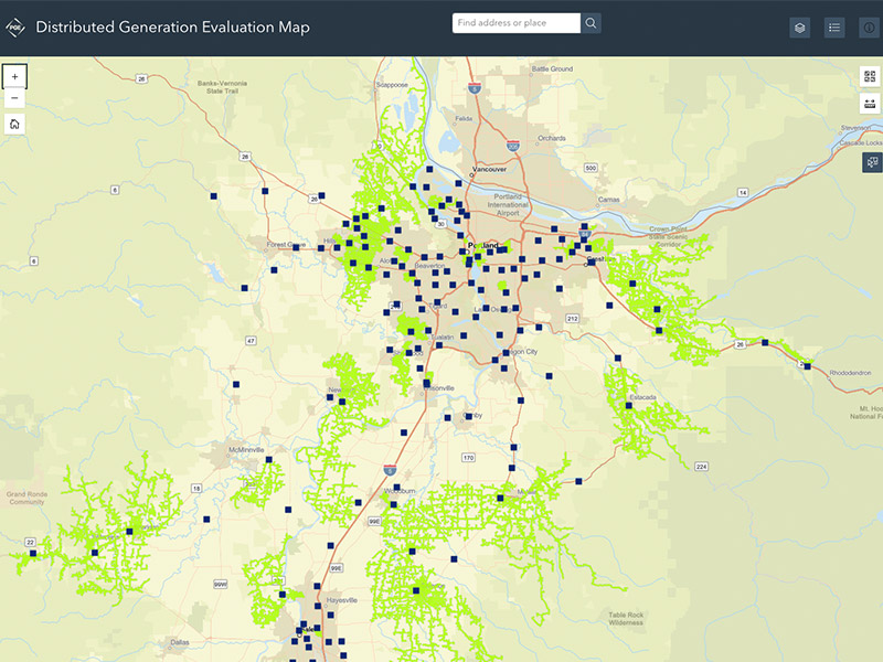 This interactive map provides a visualization of the PGE distribution system's capacity to accommodate distributed generation projects. It serves as a valuable planning tool for evaluating the grid's potential to support distributed generation at your location of interest. To avoid delays or costly design changes, please wait for our approval before starting construction. See also: