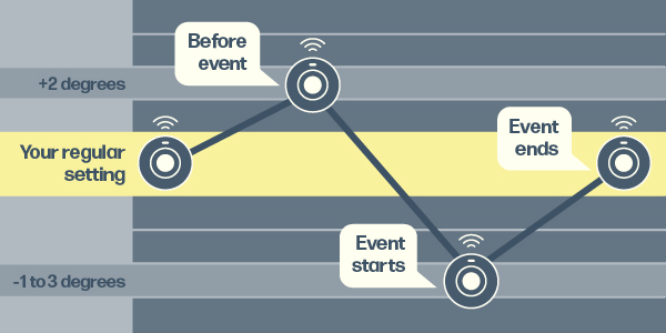 After the event, your thermostat will automatically return to its original setting. It’s that easy!